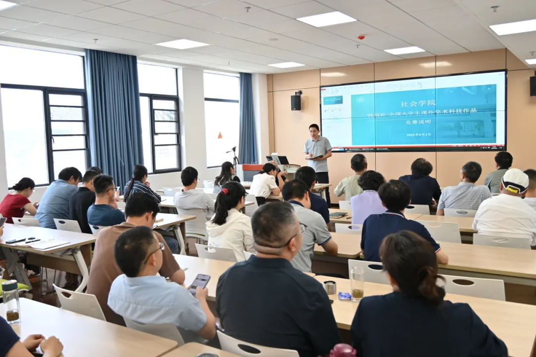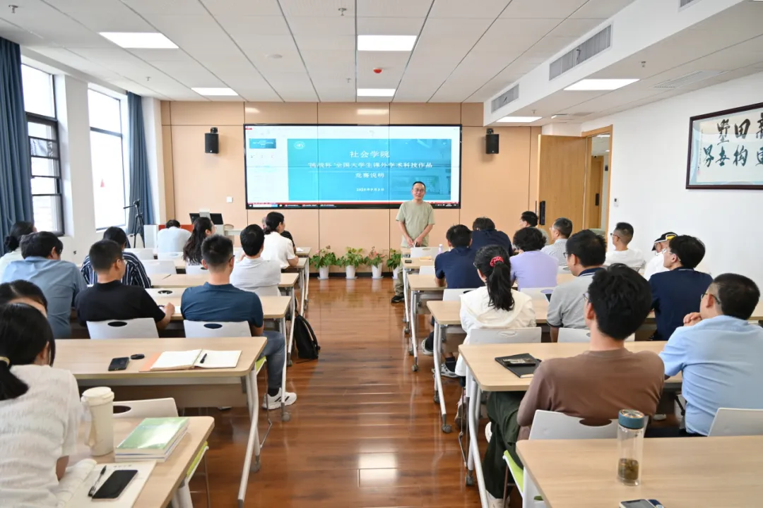 辅导员兼院团委书记王铭歆就“挑战杯”全国大学生课外学术科技作品竞赛进行动员说明,介绍赛事安排与支持政策,鼓励教师积极参与指导,引导学生聚焦社会现实问题开展研究,以竞赛为抓手促进学术能力与创新思维的双重提升。
